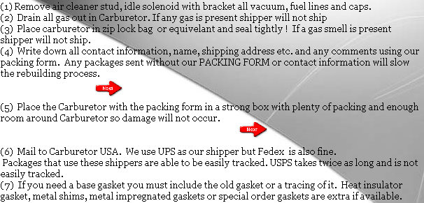 We will contact you by phone when your carburetor is in it's final finishing stage to update you and to receive your credit card payment information.